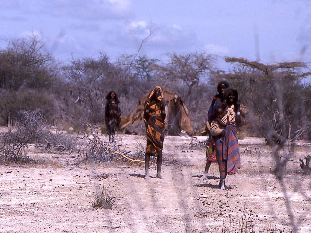 Somali nomad women having a look at us scary white strangers. These women took off screaming into the bush when I asked them to come closer so we could ask them directions. I think we were the first white people they had seen and hearing Somali language from me was just to much for them.