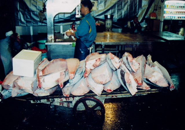 After being bought the tuna is cut up using band saws and then sold again to smaller shops.