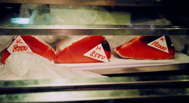 The most expensive tuna on the right is selling for around $70 per pound. This is wholesale!