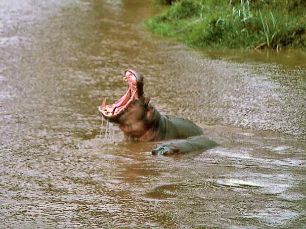 Hippo shows off his big teeth. Masai Mara NP, Kenya