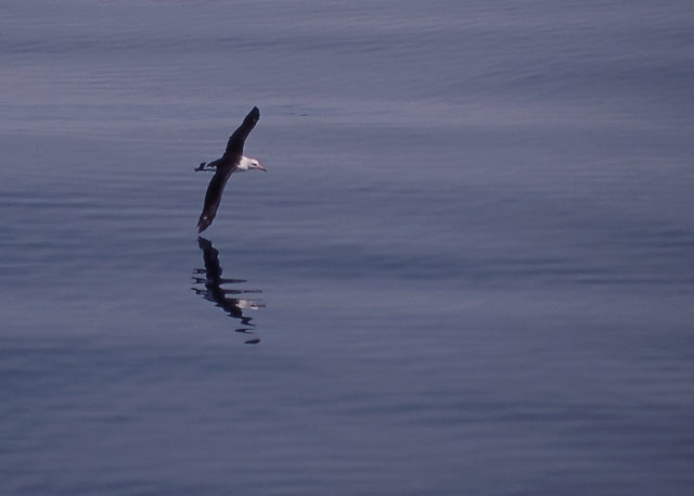 Laysan Albatross in North Pacific on a very calm day. I had wondered for a long time wether the tips of these birds wings ever touched the water while making this kind of tight turn. On this day I saw that they do brush the water on occasion.